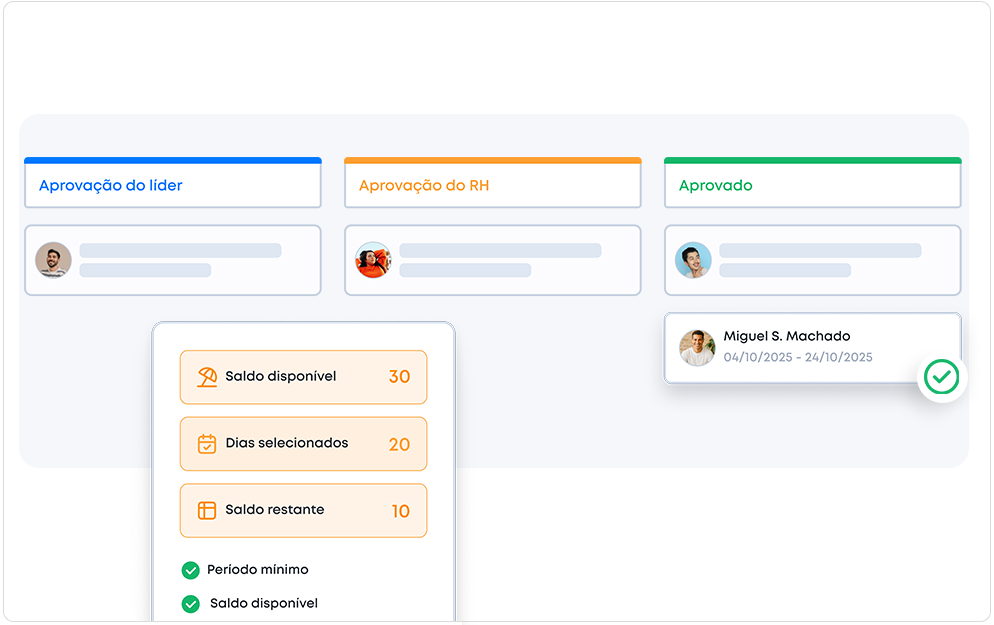 Configure as regras de férias que você aplica aos PJs e use nosso fluxo de solicitação e aprovação para gerir os descansos do seu time.